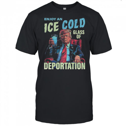 But this shirt is more than just a piece of fabric; it’s a call to action. When you don this Trump enjoy an ICE cold glass of Deportation shirt, you’re not just wearing a garment; you’re embodying a message. Join the ranks of those unafraid to speak up, those ready to challenge the status quo. Be the change you want to see in the world, starting with a simple yet powerful statement on your chest. So, what are you waiting for? Make a statement, start a conversation, and stand up for what you believe in. Get your hands on the Trump enjoy an ICE cold glass of Deportation shirt today and let your voice be heard in style.