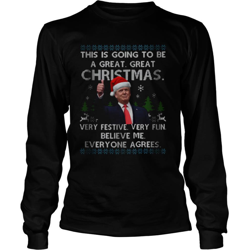 Trump This Is Going To Be A Great Great Christmas Very Festive Very Fun Believe Me Everyone A Grees shirt, hoodie, sweater, longsleeve and ladies t-shirt