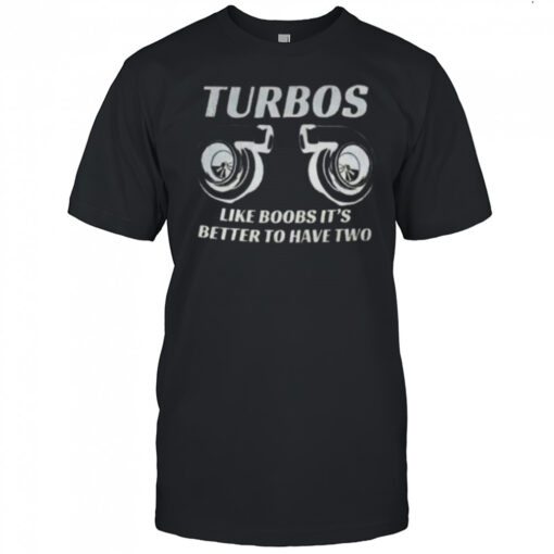 Ready to inject some humor and personality into your wardrobe? Don’t miss out on the opportunity to own our Turbos like boobs it’s better to have two shirt today! Elevate your style game, uplift your spirits, and let your fashion choices reflect your playful side. Whether you’re treating yourself or looking for a unique gift for a fellow car enthusiast, this shirt is a surefire way to stand out from the crowd. Embrace the laughter, embrace the fun, and embrace the joy of being yourself with this one-of-a-kind statement tee!