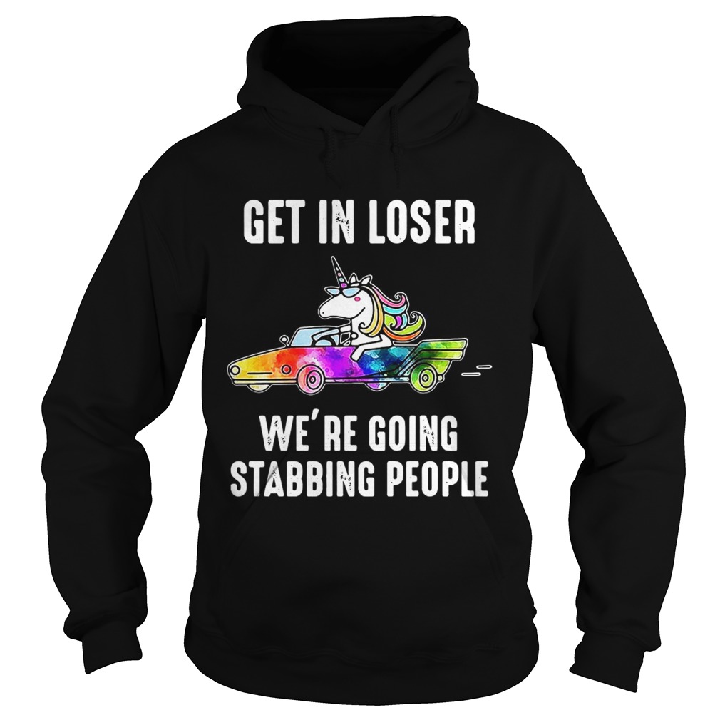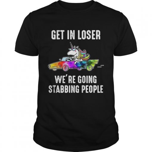 Unicorn Get in loser Were going stabbing people shirt, hoodie, sweater, longsleeve and ladies t-shirt