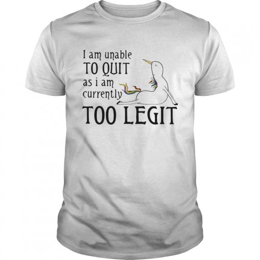 Unicorn I Am Unable To Quit As I Am Too Legit Shirt, hoodie, sweater, longsleeve and ladies t-shirt