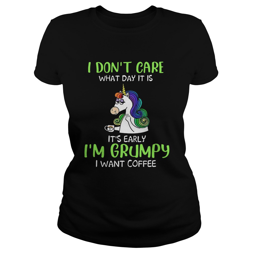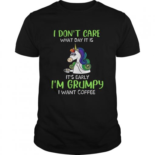 Unicorn I Dont Care What Day It Is Its Early Im Grumpy I Want Coffee shirt, hoodie, sweater, longsleeve and ladies t-shirt