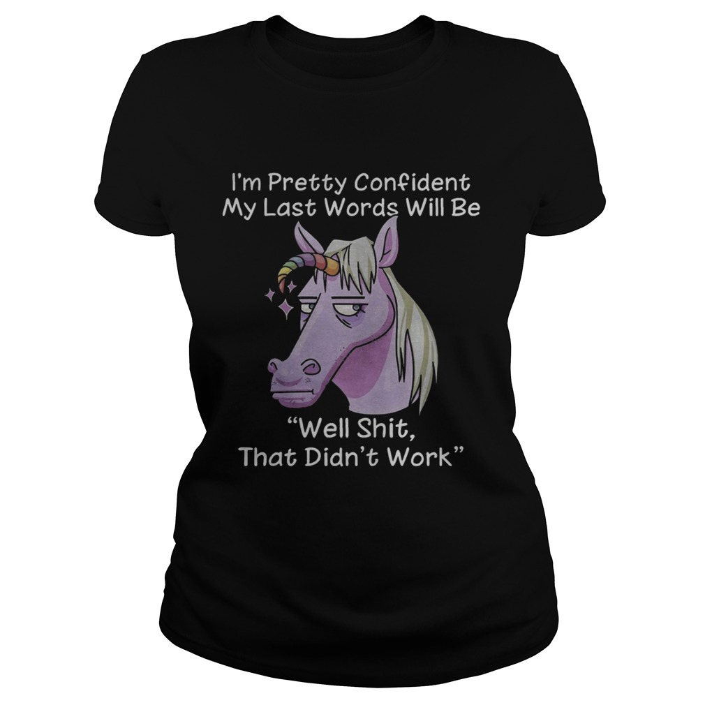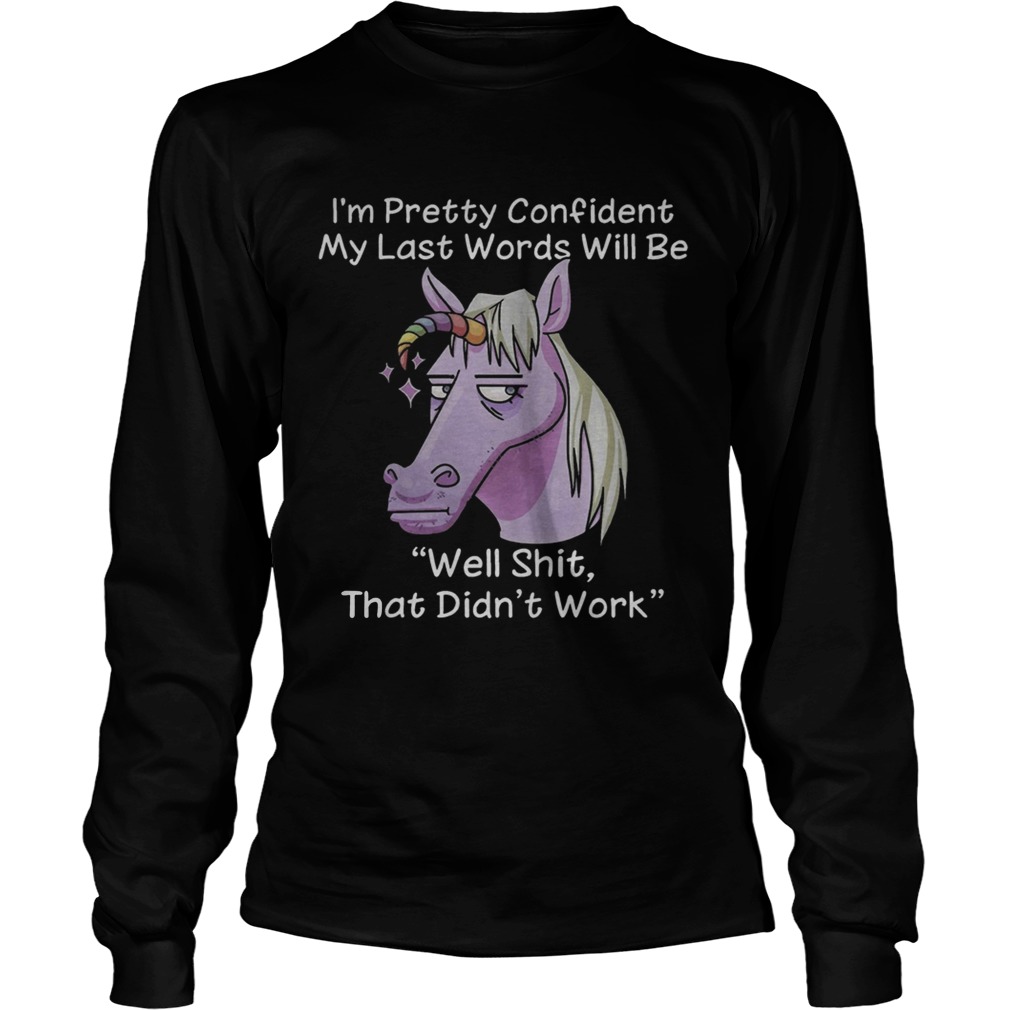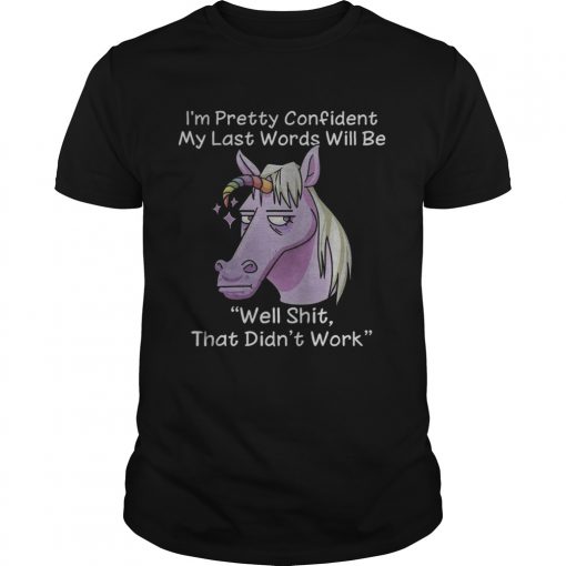 Unicorn I’m pretty confident my last words will be well shit that didn’t work shirt, hoodie, tank top and sweater