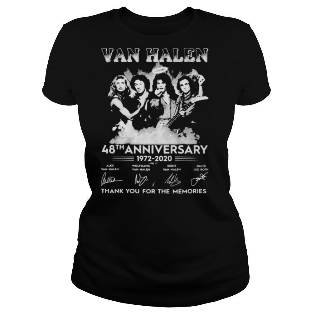 Van halen 48th anniversary 1972 2020 thank for the memories signature vintage retro shirt, hoodie, sweater, longsleeve and ladies t-shirt