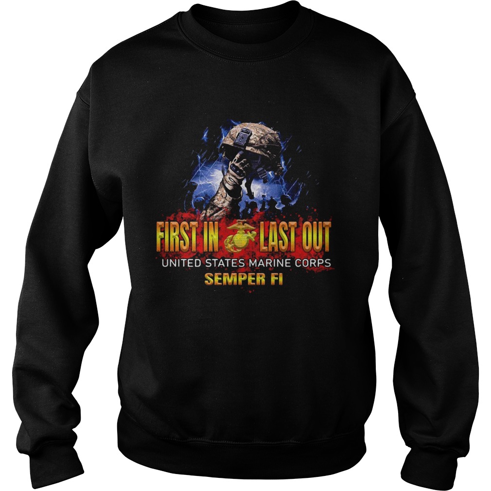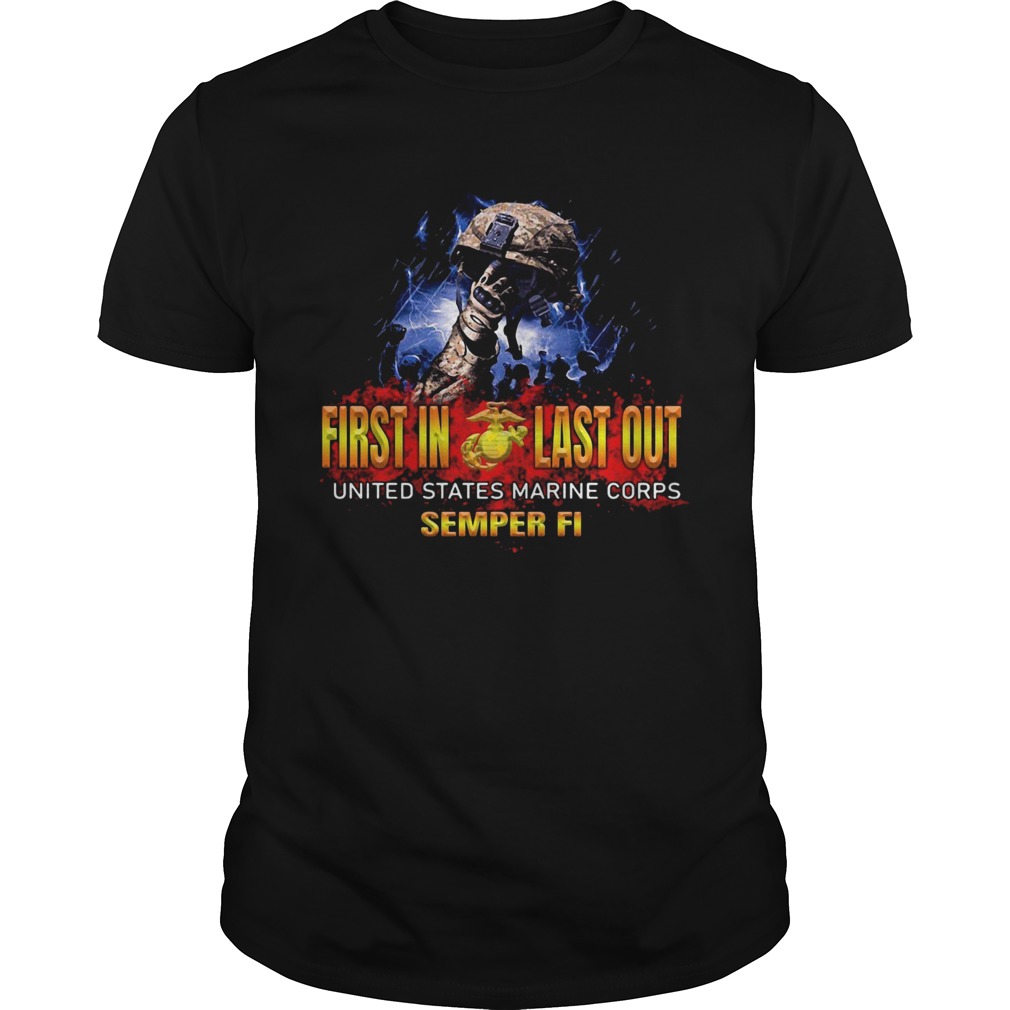Veteran first in last out united states marine corps semper fi shirt, hoodie, sweater, longsleeve and ladies t-shirt