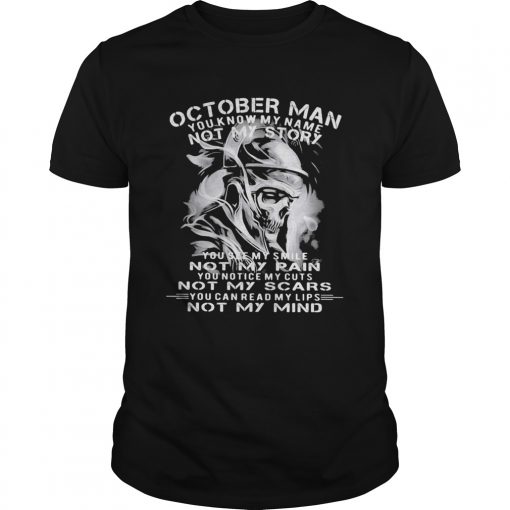 Veteran skull october man you know my name not my story you see my smile not my pain not my scars y, hoodie, sweater, longsleeve and ladies t-shirt