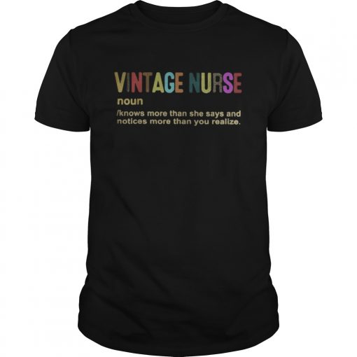 Vintage Nurse Noun Knows More Than She Says And Notices More Than You Realize shirt, hoodie, sweater, longsleeve and ladies t-shirt