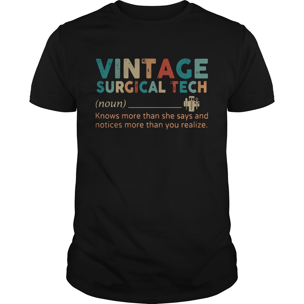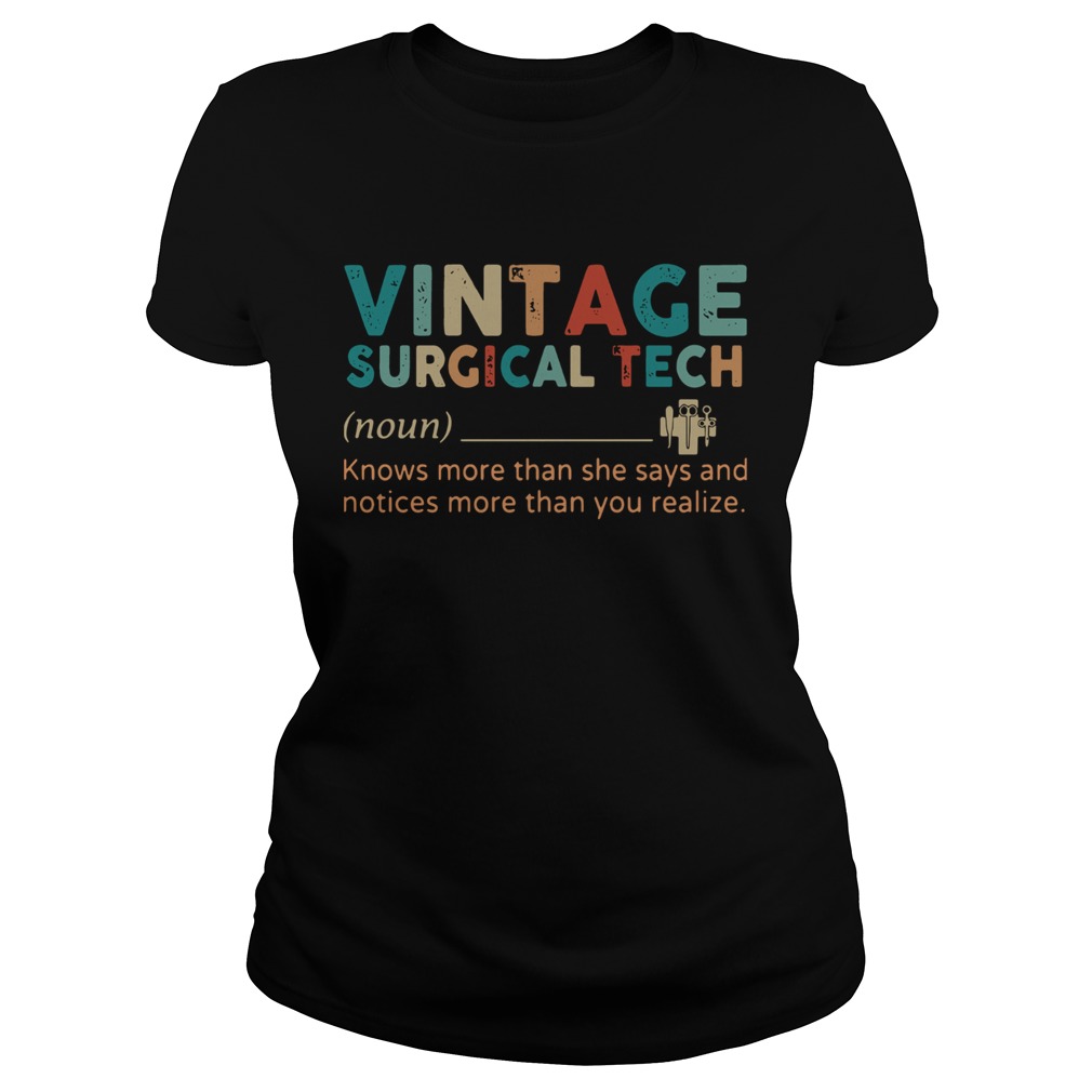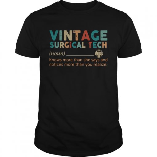 Vintage Surgical Tech Knows More Than She Says And Notices More Than You Realize shirt, hoodie, sweater, longsleeve and ladies t-shirt