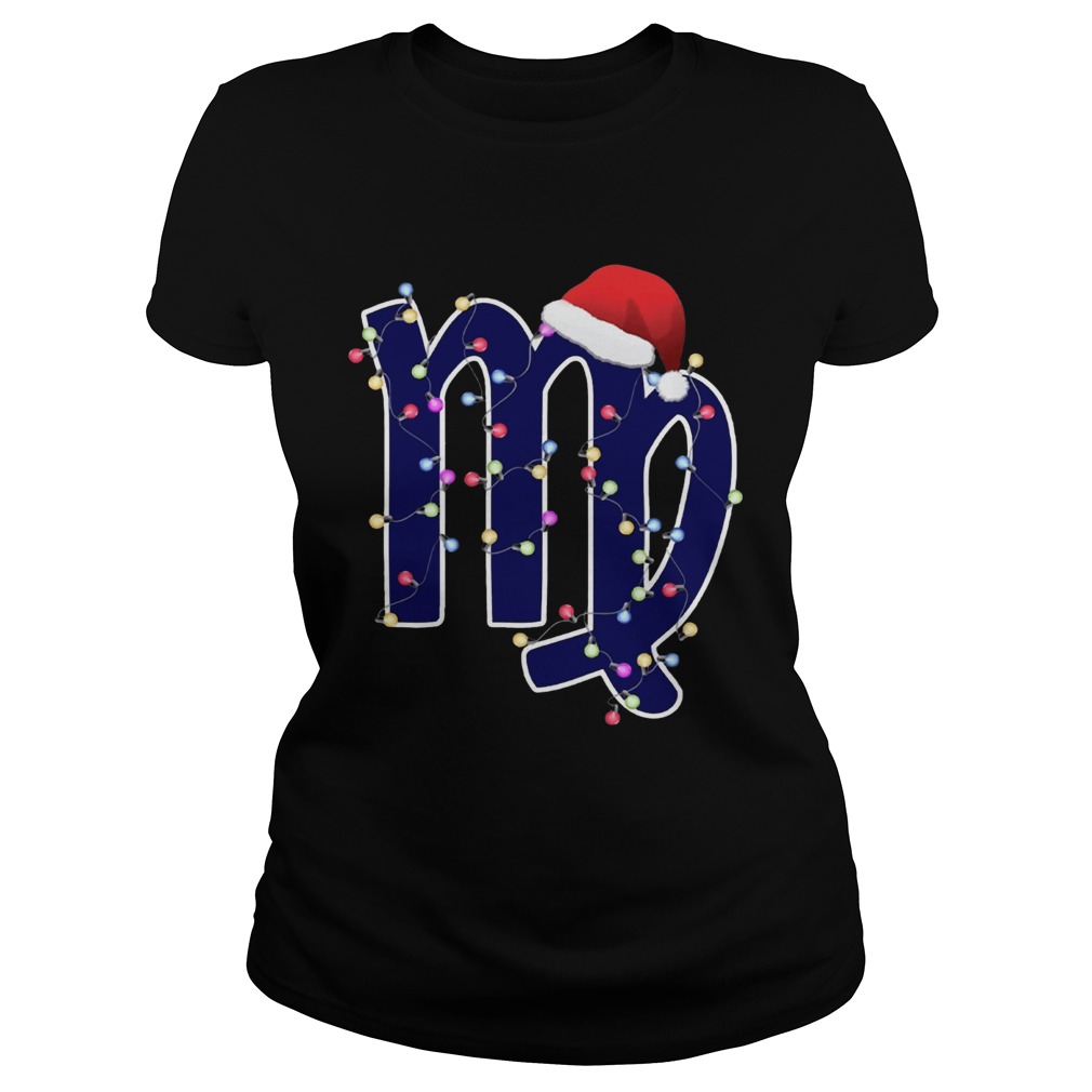 Virgo Zodiac Sign In Christmas Lights And Santas Hat TShirt, hoodie, sweater, longsleeve and ladies t-shirt