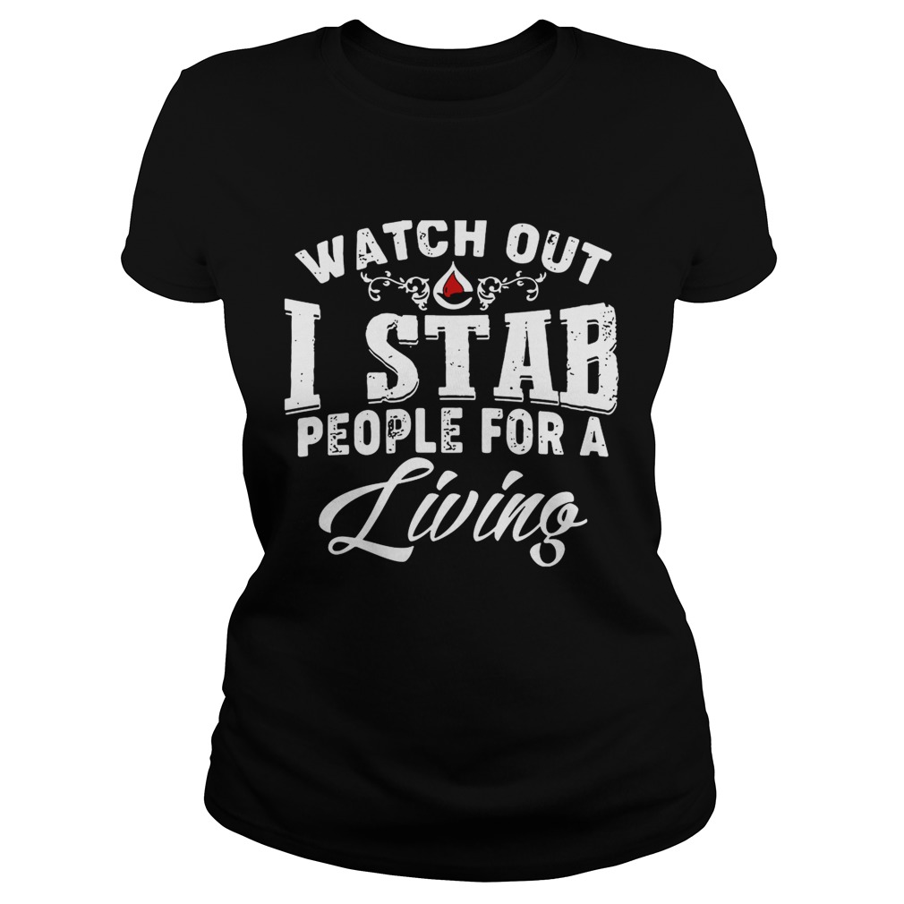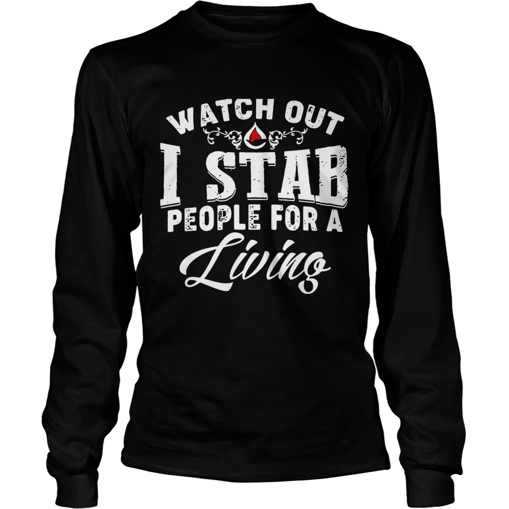 Watch outI stab people for a living shirt, hoodie, sweater, longsleeve and ladies t-shirt