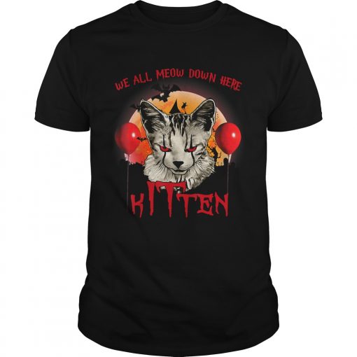 We All Meow Down Here Clown Cat Kitten Halloween TShirt, hoodie, sweater, longsleeve and ladies t-shirt