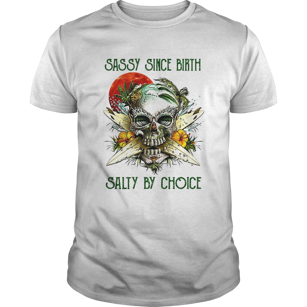 Weed skull sassy since birth salty by choice sunset shirt, hoodie, sweater, longsleeve and ladies t-shirt