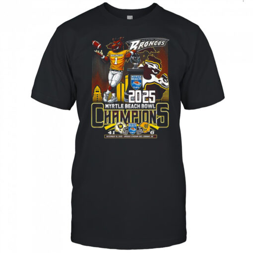 Don’t miss your chance to own a piece of history! Elevate your fan gear collection with the Western Michigan Broncos 2025 Myrtle Beach Bowl Champions mascot shirt today. Whether you’re cheering from the stands or watching from home, this shirt is your statement of unwavering loyalty and passion for your team. Stand out in style and join the celebration with this limited-edition shirt that symbolizes the team’s journey to victory. Embrace the winning legacy and show your support wherever you go. Get your hands on the Western Michigan Broncos 2025 Myrtle Beach Bowl Champions mascot shirt now and let your team spirit shine!