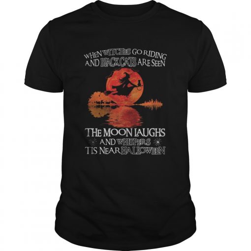 When witches go riding and black cats are seen the moon laughs and whispers tis near halloween rive, hoodie, sweater, longsleeve and ladies t-shirt