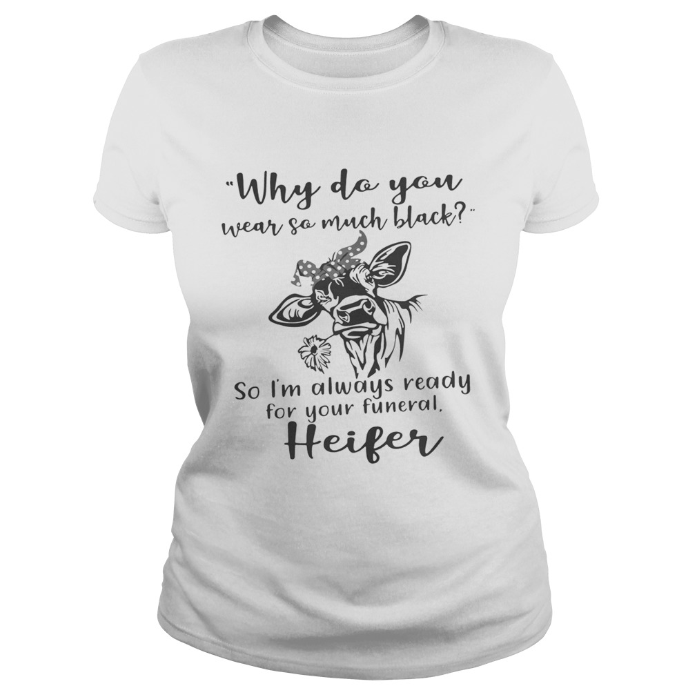 Why do you wear so much black so I’m always ready for your funeral heifer shirt