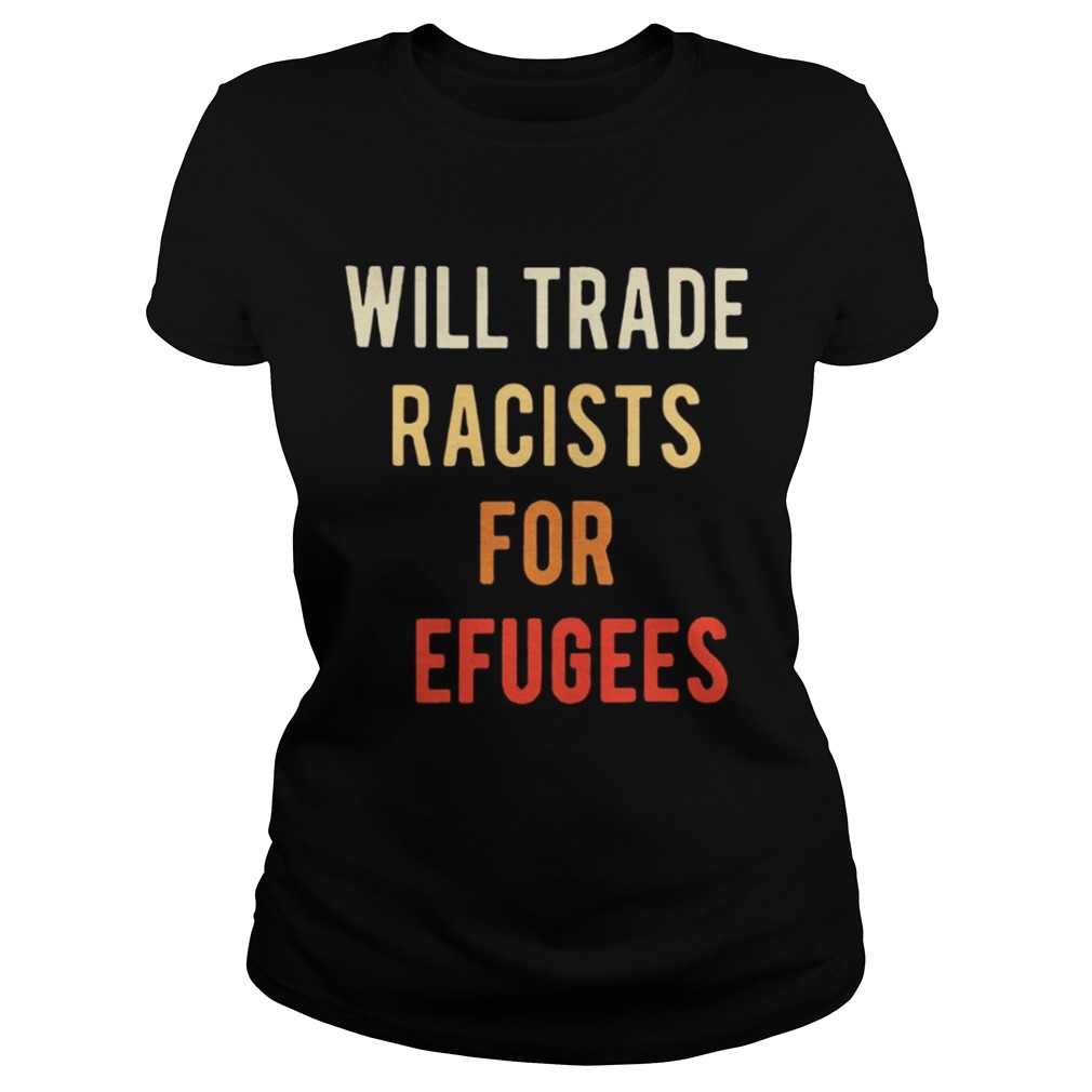 It is incredible how this important being but with such great and valuable humility has the best disposition to know cultures, to dance different types of music, many criticized when he sang the bamba, but no one at least of the Will Trade Racists for Refugees Activists protest shirt has had the detail of trying it and uploading it to social networks. I love you will smith for the great humility you have, no doubt you are all light.