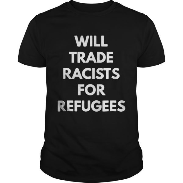 She is just want to know the Will trade racists for refugees shirt of the people on her statement not to run. She just despises real Americans and does not want to put the work in to meet them. Otherwise, you’d drag Democrat down deeper to the quicksand, which they’re in right now.