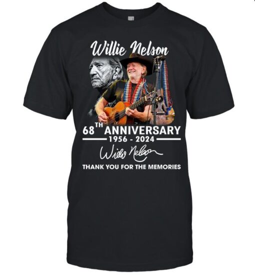 Willie Nelson 68th Anniversary 1956–2024 Thank You For The Memories T-Shirt, hoodie, sweater, longsleeve and ladies t-shirt
