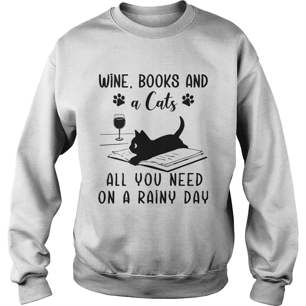 Wine Books And A Cats All You Need On A Rainy Day shirt, hoodie, sweater, longsleeve and ladies t-shirt