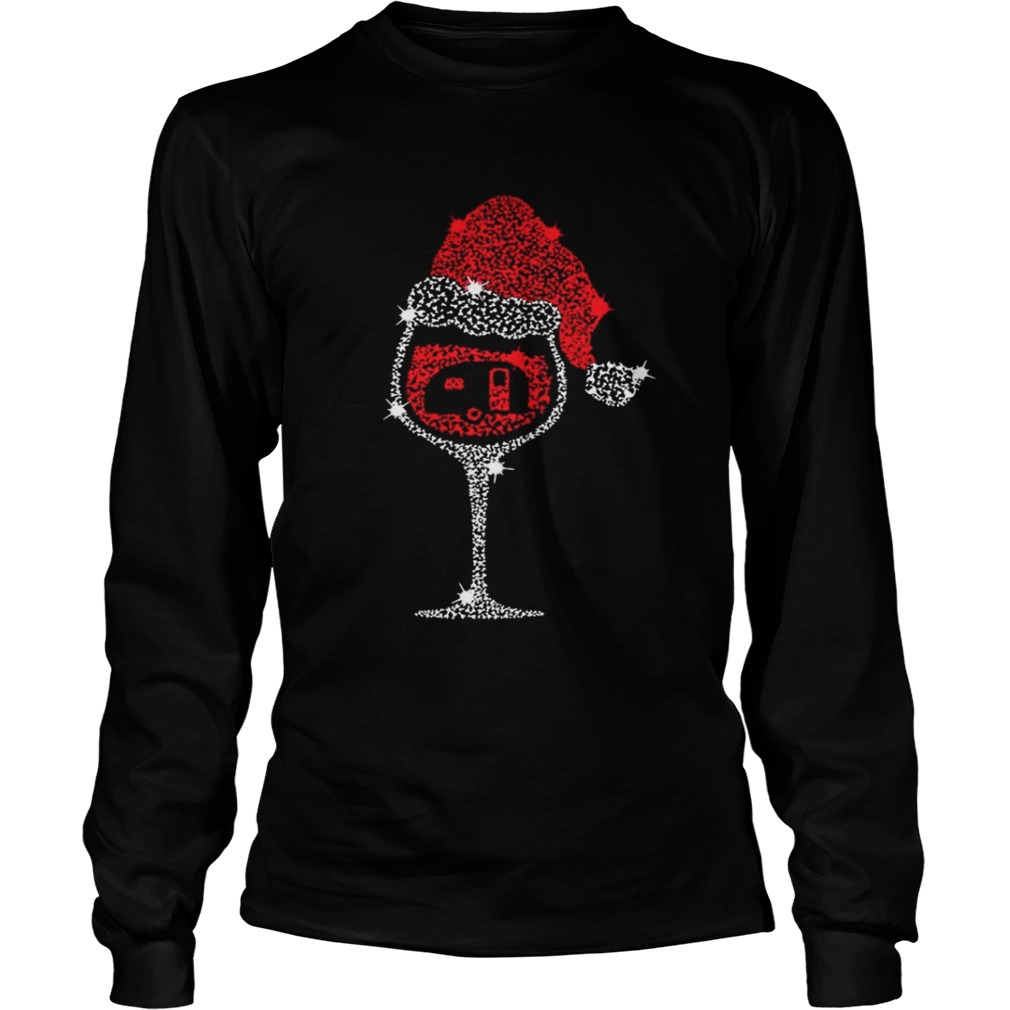 Wine Glass Red Santa Hat Camping Diamond shirt