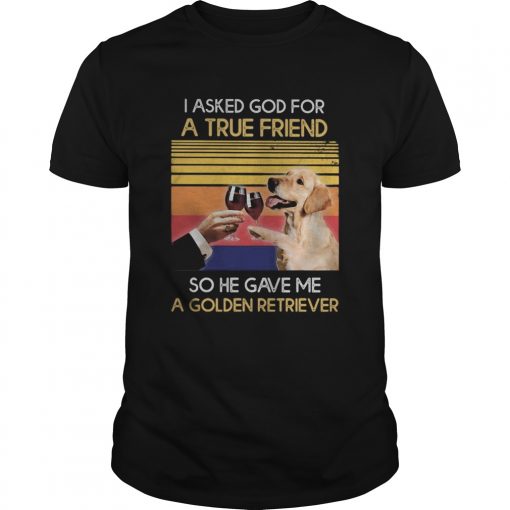 Wine I asked god for a true friend so have gave me a golden retriever vintage retro shirt, hoodie, sweater, longsleeve and ladies t-shirt