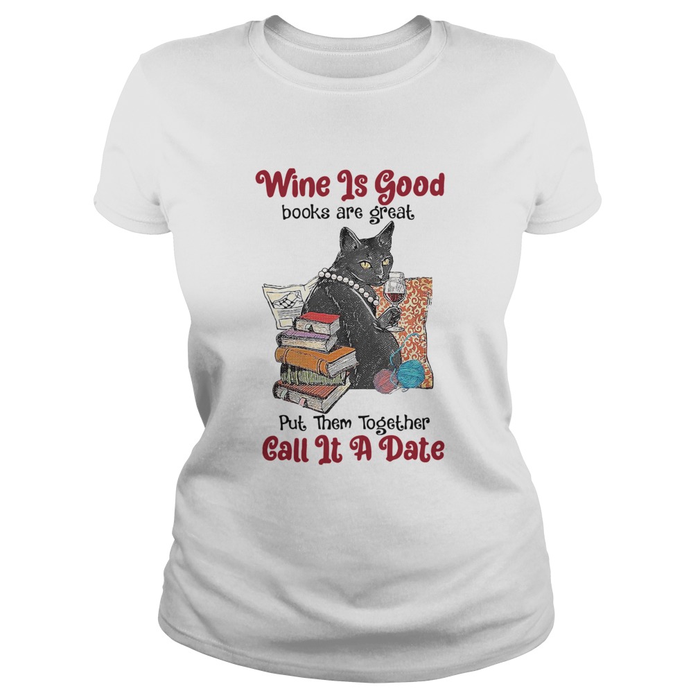 Wine Is Good Books Are Great Put Them Together Call It A Date shirt, hoodie, sweater, longsleeve and ladies t-shirt