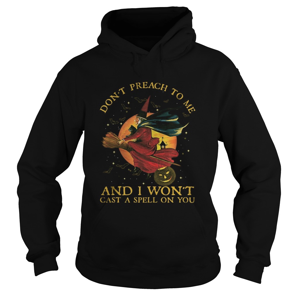 Witch Cat Dont preach to me and I wont cast a spell on You Halloween shirt, hoodie, sweater, longsleeve and ladies t-shirt
