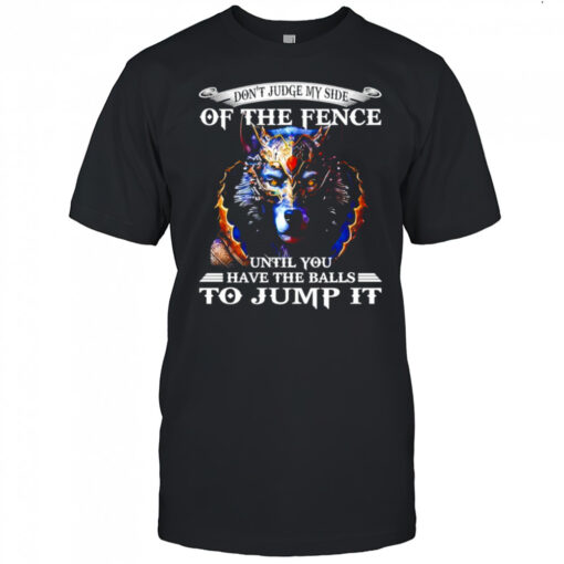 Wolf don’t judge my side of the fence until you have the balls to jump it shirt, hoodie, sweater, longsleeve and ladies t-shirt