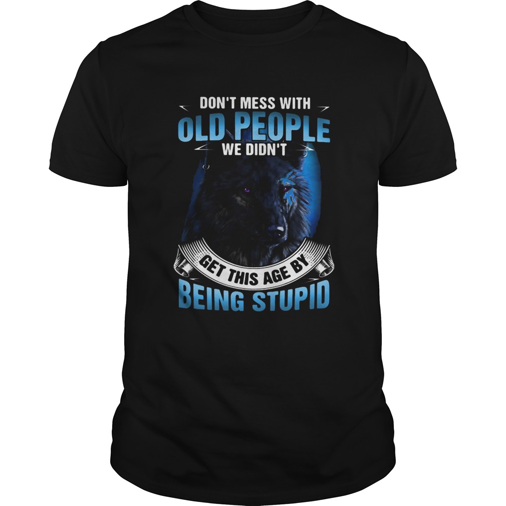 Wolf dont mess with old people we didnt get this age by being stupid shirt, hoodie, sweater, longsleeve and ladies t-shirt