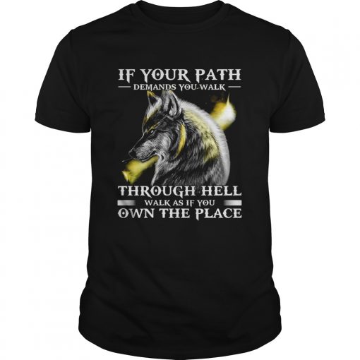 Wolf If Your Path Demands You Walk Through Hell Walk As if You Own The Place shirt, hoodie, sweater, longsleeve and ladies t-shirt