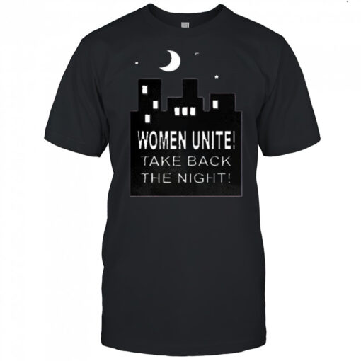 Women unite take back the night slogan meme city skyline shirt, hoodie, sweater, longsleeve and ladies t-shirt