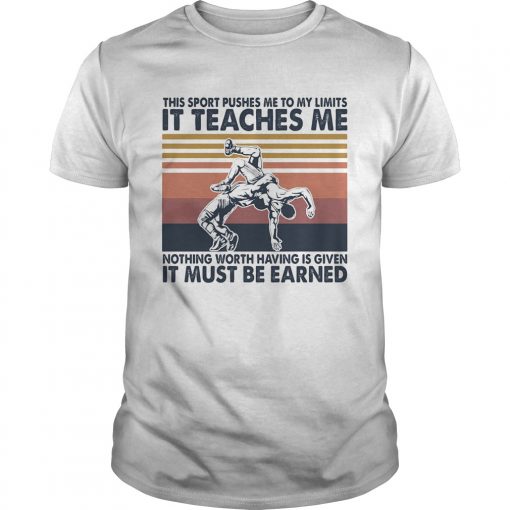 Wrestlin This sport pushes me to my limits it teaches me nothing worth having is given vintage shir, hoodie, sweater, longsleeve and ladies t-shirt