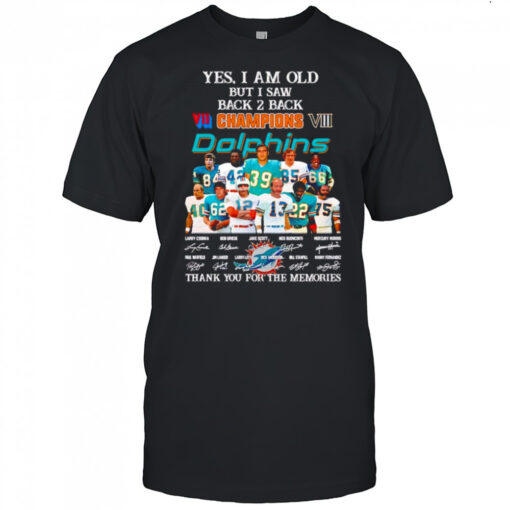 Yes I am old but I saw back 2 back Champions Miami Dolphins thank you for the memories shirt, hoodie, sweater, longsleeve and ladies t-shirt