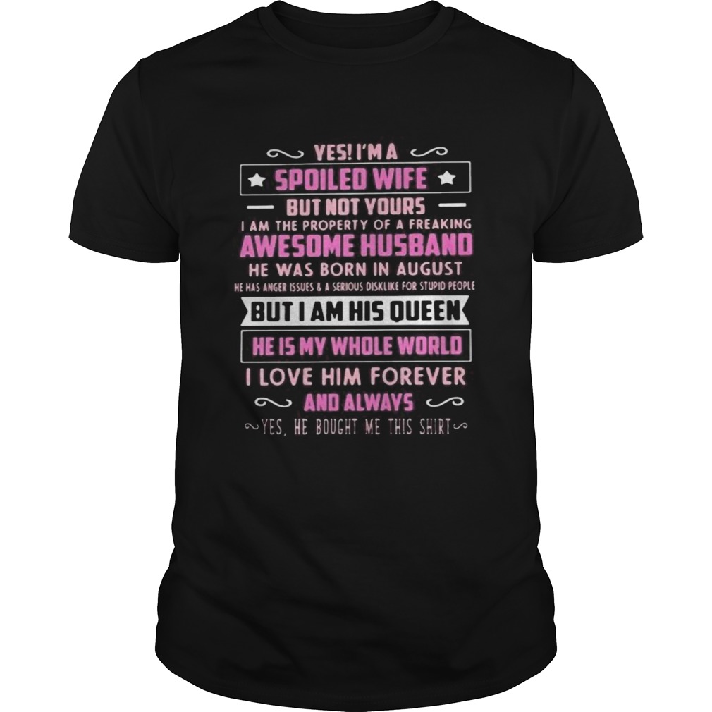 Yes im a spoiled wife but not yours i am the property of a freaking awesome husband he was born in, hoodie, sweater, longsleeve and ladies t-shirt