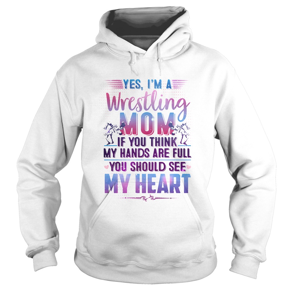 Yes im a wrestling mom if you think my hands are full you should see my heart shirt, hoodie, sweater, longsleeve and ladies t-shirt