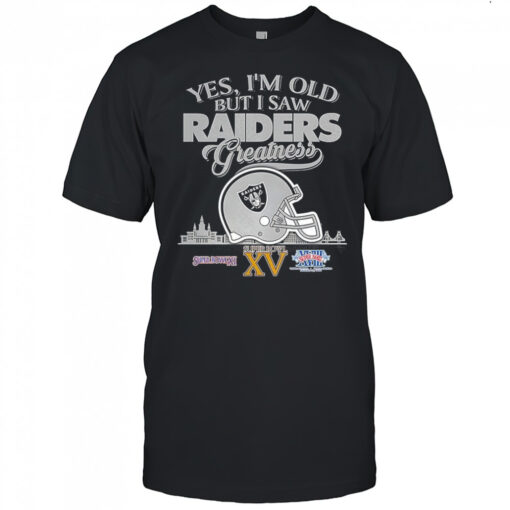 Yes I’m old but I Oakland Raiders greatness Super Bowl helmet skyline shirt, hoodie, sweater, longsleeve and ladies t-shirt