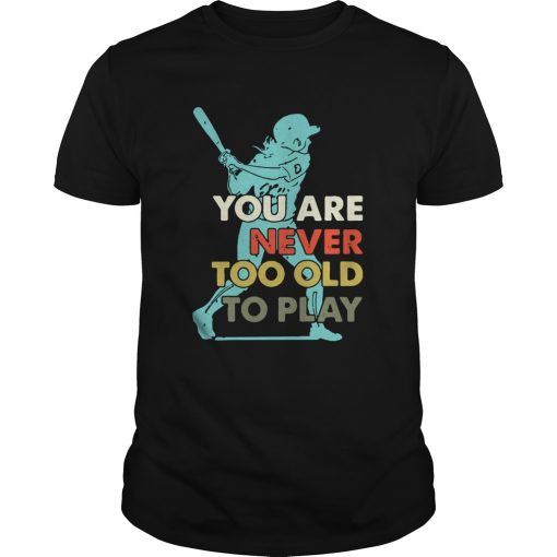 You Are Never Too Old To Play Baseball shirt, hoodie, sweater, longsleeve and ladies t-shirt