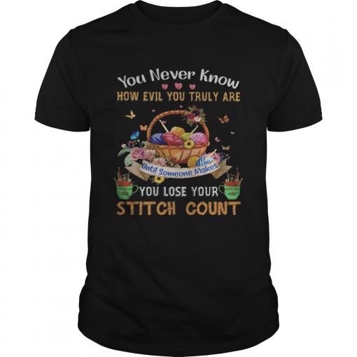 You never know how evil you truly are until someone makes you lose your stitch count knitting shirt, hoodie, sweater, longsleeve and ladies t-shirt
