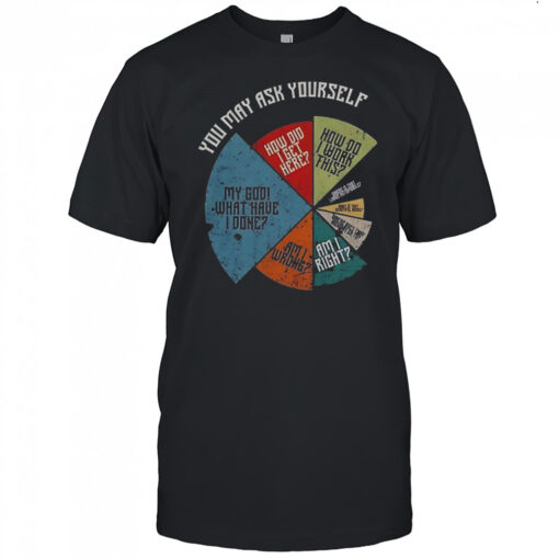 Now, picture yourself wearing this You Should Ask Yourself Vintage My God What Have I Done How Did I Get Here How Do I Work This T-Shirt and feeling an instant connection to its thought-provoking message. Whether you’re navigating through life’s uncertainties or simply seeking a touch of whimsy in your wardrobe, this tee is the statement piece you need. Embrace the enigmatic allure of the unknown while exuding confidence and style. So, why wait? Add this conversation starter to your collection today and let your outfit reflect not just your fashion sense but also your profound ponderings. Dare to ask yourself the tough questions and look good doing it with this captivating tee.